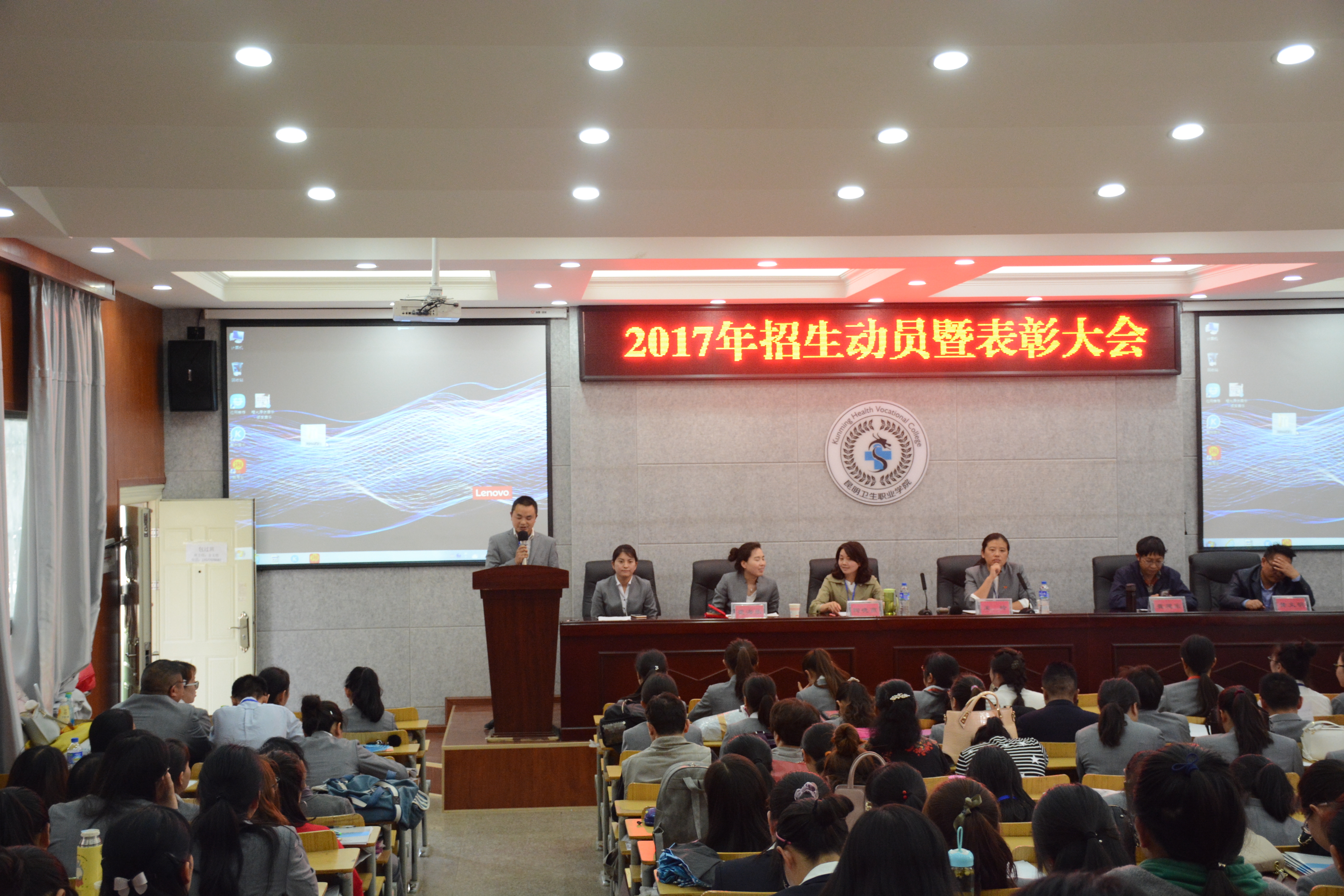 4月19日下午,beat365平台官方网站(中专部)2017年招生动员暨表彰大会在学术报告厅隆重召开。全校教职工参加了大会。此次大会共三项议程。