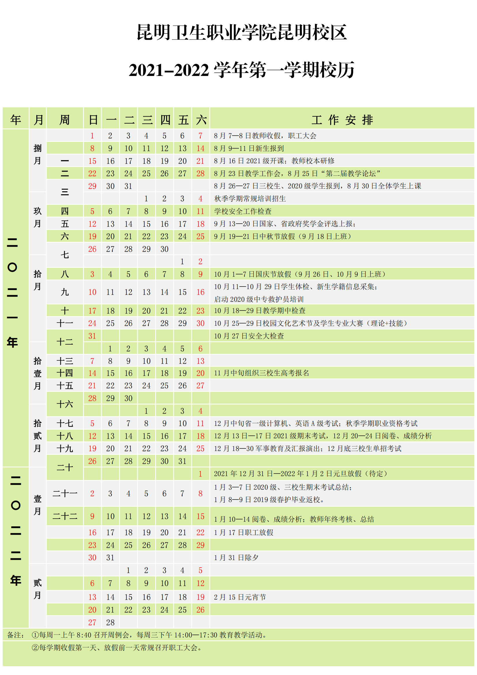 beat365平台官方网站昆明校区2021-2022学年第一学期校历