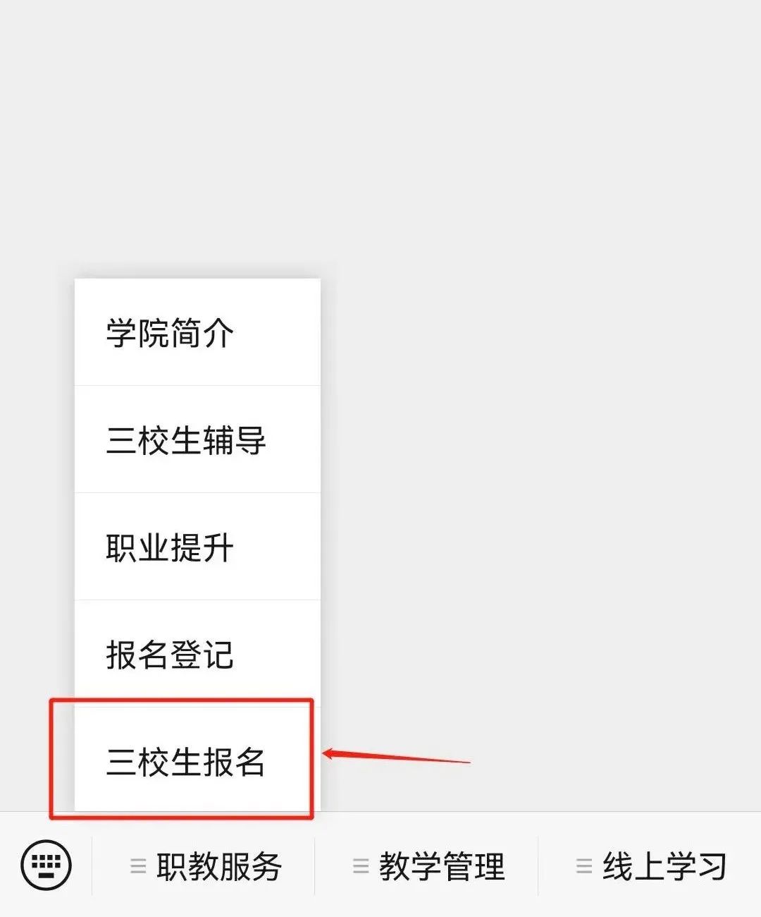 应往届三校生随报随到,可直接到校、来电等方式向学院报名。