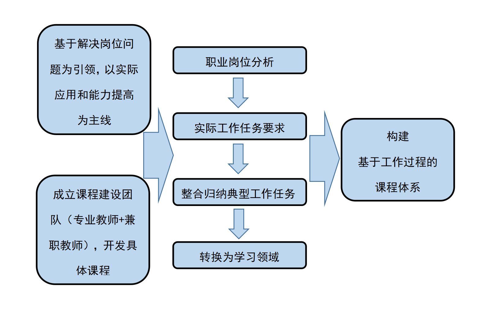 专业(技能)课程按专业岗位的能力要求,强化能力实践一体化教学,突出“做中学、学中教” 的职业教育特色,根据培养目标、教学内容和学生的学习特点以及职业资格考核要求,提倡项目教学、案例教学、引导教学、任务教学、角色扮演、情境教学等,强化 “教、学、做” 一体化的人才培养模式改革,利用校内外实训基地,将学生的自主学习、合作学习和教师引导教学等教学组织形式有机结合。