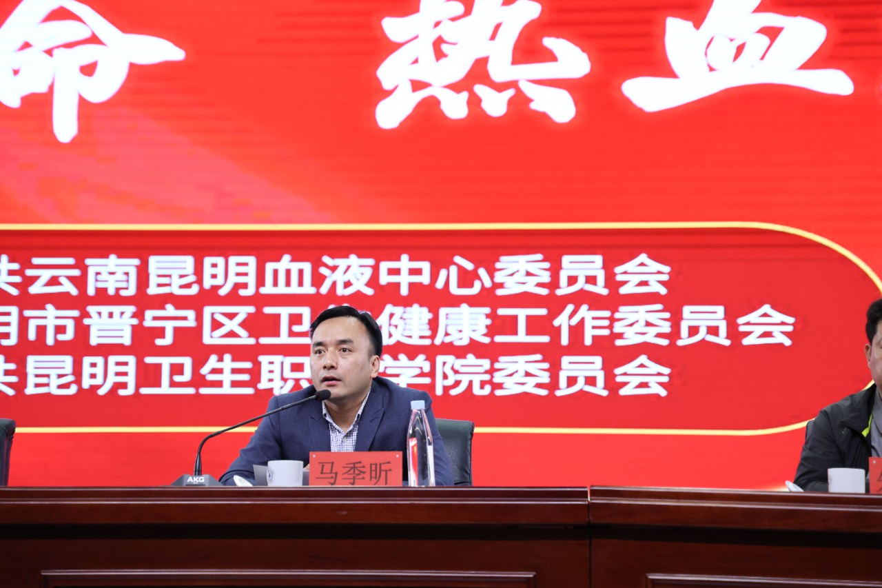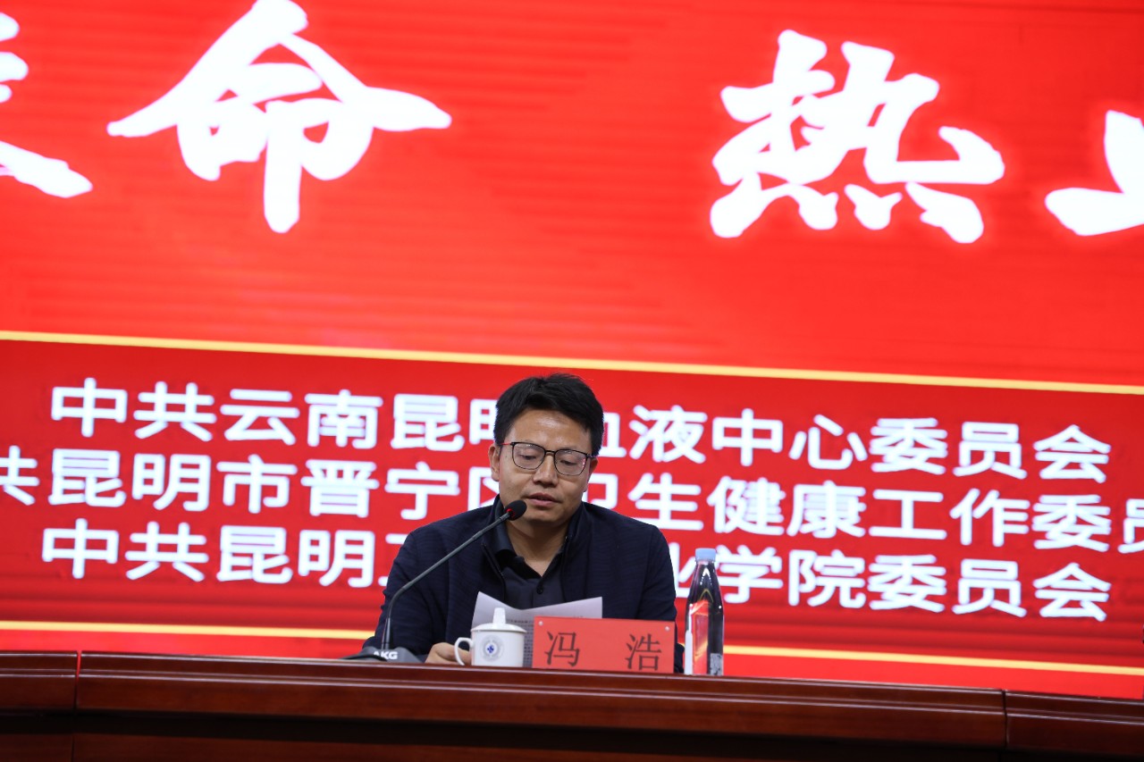 昆明市晋宁区人民政府副区长冯浩介绍了无偿献血的社会意义,对学院多年来保持踊跃献血的优良传统,以热血守护生命,用爱心助力健康,用实际行动诠释对生命的厚爱和对社会的责任,践行新时代的使命担当给与了肯定,并代表晋宁区委、区政府向所有无偿献血者、为晋宁区无偿献血事业做出贡献的社会各界朋友们,以及学院的师生员工表示衷心的感谢和诚挚的敬意。冯副区长介绍了无偿献血的相关知识,并呼吁全校师生积极加入无偿献血的队伍中来,争做无偿献血行动的响应者,做学习雷锋精神的传承者,为加快健康晋宁建设、推动晋宁区卫生健康事业高质量发展作出重要贡献。