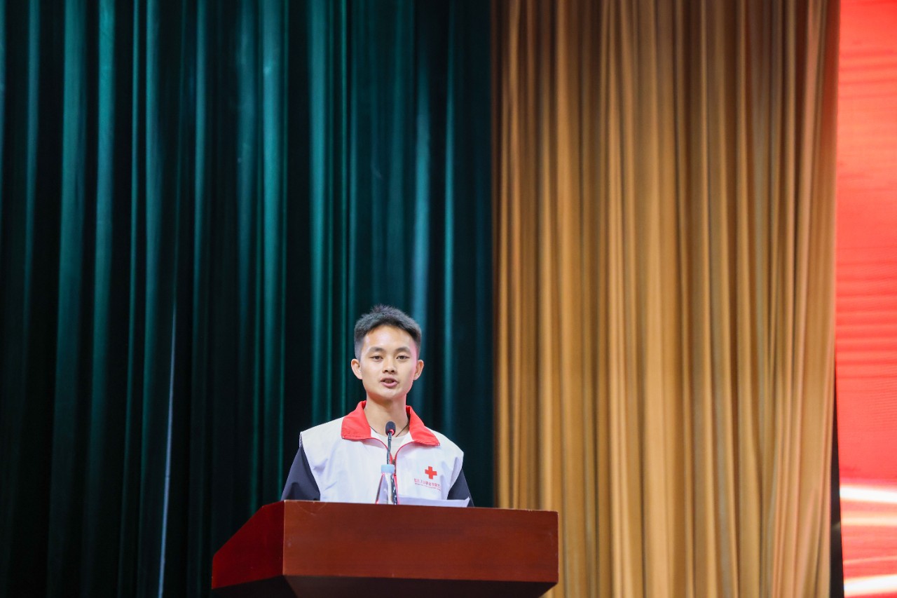 来自学院红十字会的志愿者代表李兴帮同学分享了献血活动的经验与心得,以爱之名,号召更多青年人加入无偿献血队伍。