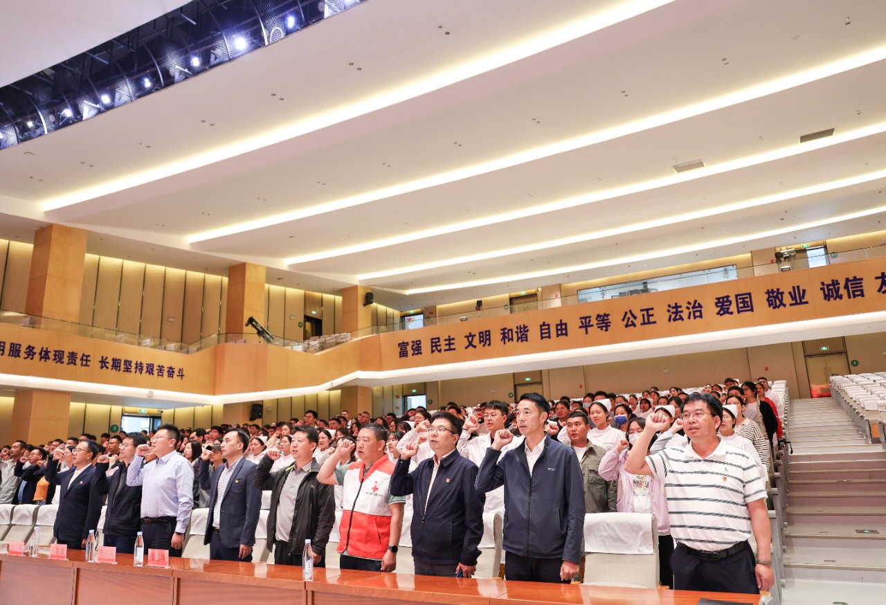 活动最后,志愿者代表李兴帮带领全体与会师生进行了无偿献血集体宣誓。通过宣誓的形式,强化师生对献血活动的认识,激发大家参与献血的热情和积极性,同时传递出学院师生对公益事业的高度责任感和使命感,营造出一种积极向上的氛围,引领更多人加入到献血的行列中来。