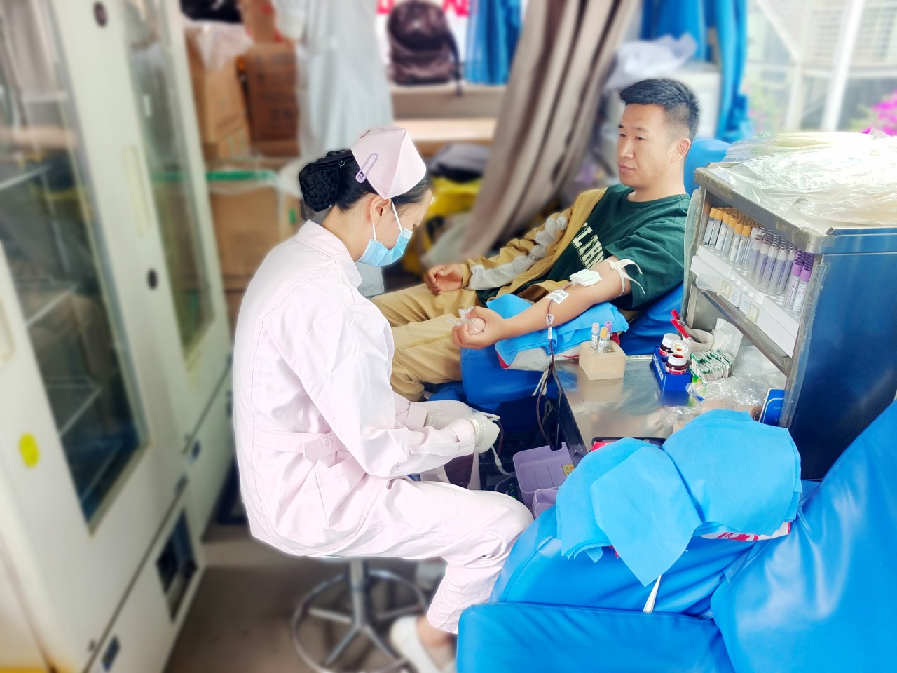 同时,学院师生积极响应号召,党员同志带头纷纷奔赴献血点参加无偿献血活动。来自护理学院的辅导员杨海燕同志,完成了她的第8次献血,累计献血量达1800ml,她表示能为社会做一点贡献是一名党员的义务,她想通过自己带头号召班级学生加入到无偿献血行列中来。大学生工作部负责人郭佶颖老师,也带头加入无偿献血行列,通过自己实际行动带动广大师生参与无偿献血。来自22级五年制护理6班的寸铭涓同学,今年1月份刚满18岁,得知学院举办无偿献血活动,也积极加入到了献血志愿者的行列,以这种特殊的方式迎接自己的18岁,诠释自己作为一名医学生应有的责任与担当。全校师生用滚烫的热血点亮更多生命的希望。
