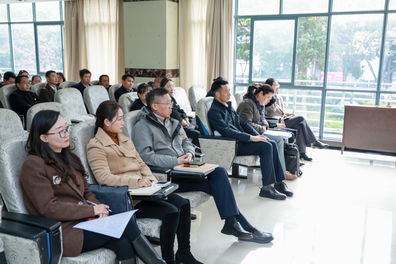 1月3日上午,省委教育工委考核组到beat365开展2024年度民办高校党建积分制、意识形态工作考核,并召开2024年度领导干部考核工作会议。考核组组长、云南经济管理学院原党委书记(督导专员)平锦,考核组副组长、云南财经大学统计与数学学院党委书记杨媛妮,学院副理事长朱秀珍、学院党政领导班子、各部处室负责人及教师代表参加会议。会议由学院党委副书记、院长龙雨霏主持。