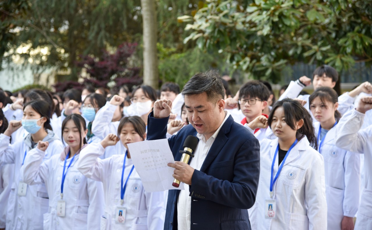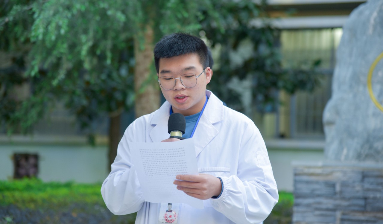 学院党委书记马季昕勉励同学们要感同身受地体会大医精诚和医者仁术的深刻内涵和高尚情操,感悟医学生成长的责任和义务,将预防疾病、解除病痛和维护群众健康作为医学生的神圣职责。珍惜来之不易的学习机会,练就过硬本领,不断增强为人民健康服务的专业水平和本领。将小我融入祖国的大我、人民的大我之中,做人民健康的守护者,毕业后到人民最需要的地方去,以仁心仁术造福人民特别是基层边疆群众,努力做党和人民信赖的好医生。