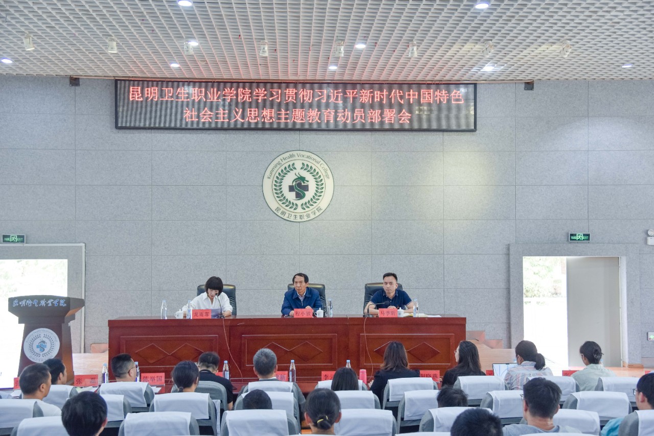 4月18日下午,beat365平台官方网站召开学习贯彻习近平新时代中国特色社会主义思想主题教育动员部署会,深入学习贯彻习近平总书记在中央主题教育工作会议上的重要讲话精神。省委教育工委第三巡回指导组组长程小放、副组长王建新、联络员李云蕊、组员庄秋斌到会指导。学校党政领导班子成员,各党(总)支部委员,各部处室、二级学院负责人及学校主题教育领导小组工作组成员参加会议。会议由主题教育领导小组副组长、党委副书记、院长龙雨霏主持。