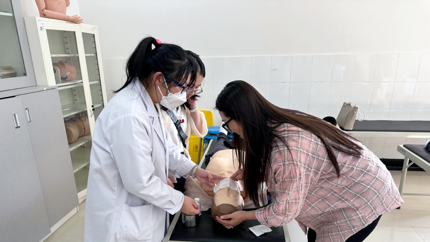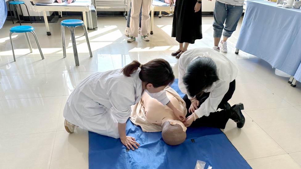 为进一步增强全院职工急救现场处置能力,提高现场人员急救知识技能,5月17日下午,临床学院在职教周期间特邀急救教研室资鹏芬、梁舒颖两位老师为大家现场开展心肺复苏(CPR+AED)培训,学院各处室、二级学院代表30余人参加培训。