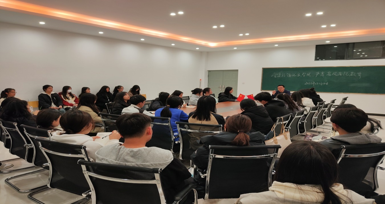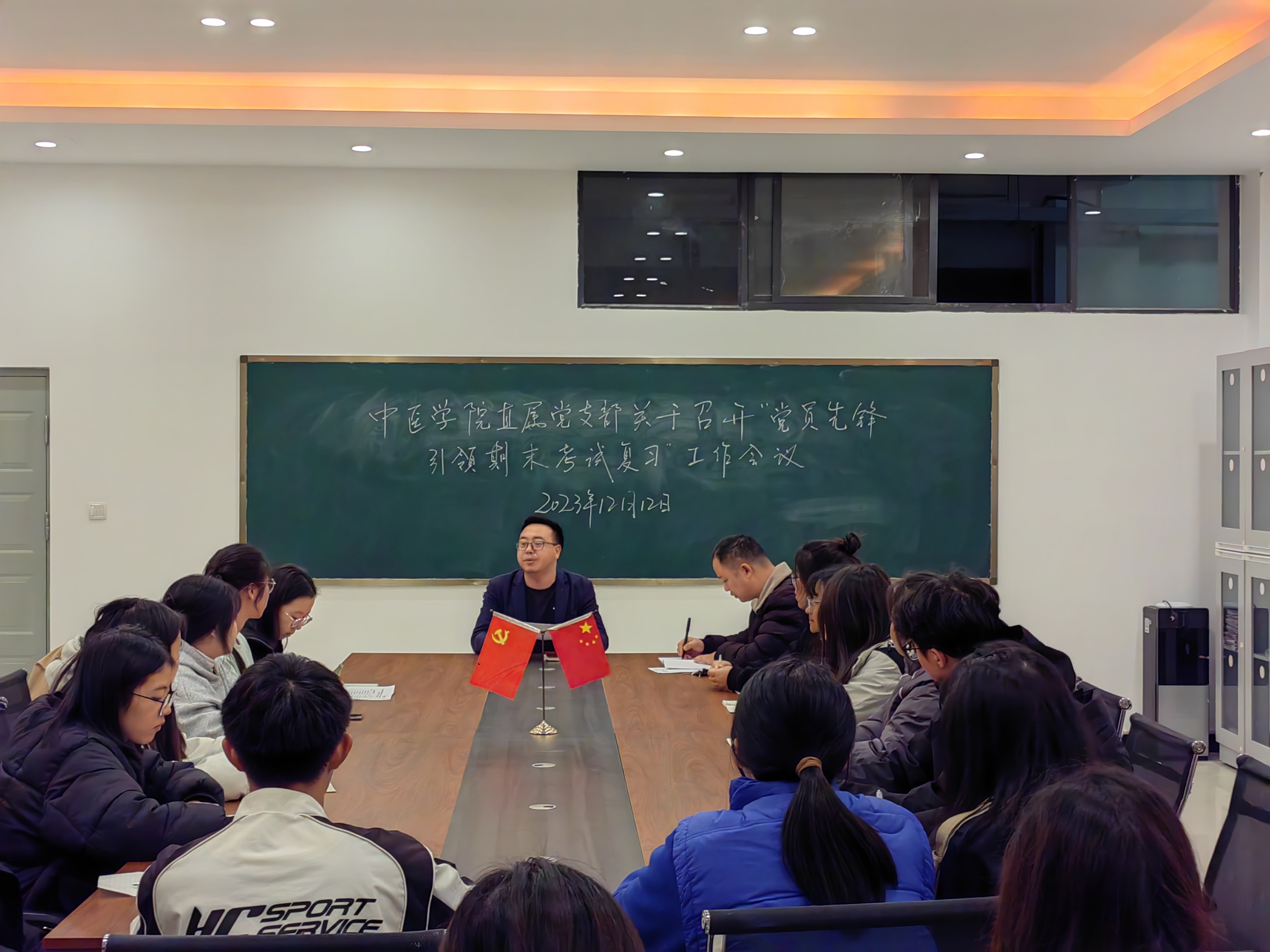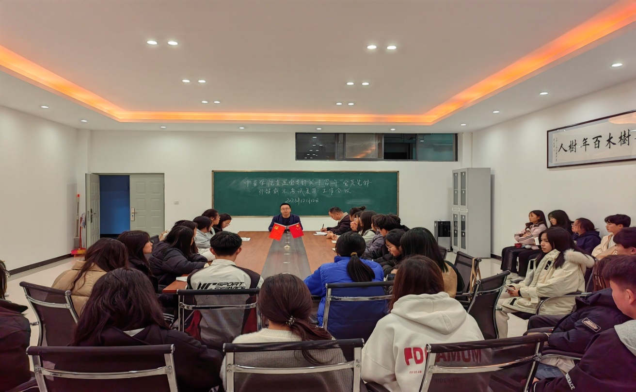 中医学院直属党支部于2023年12月12日(星期二)19:20在中医学院302室召开“党员先锋引领期末考试复习”的专题教育活动。活动由中医学院直属党支部书记易斯坐同志主持,副书记余建坤同志出席。