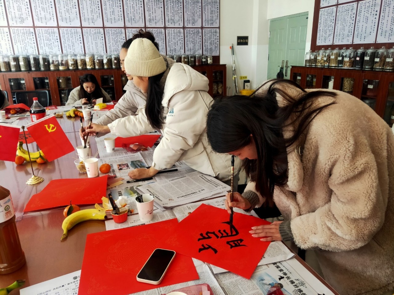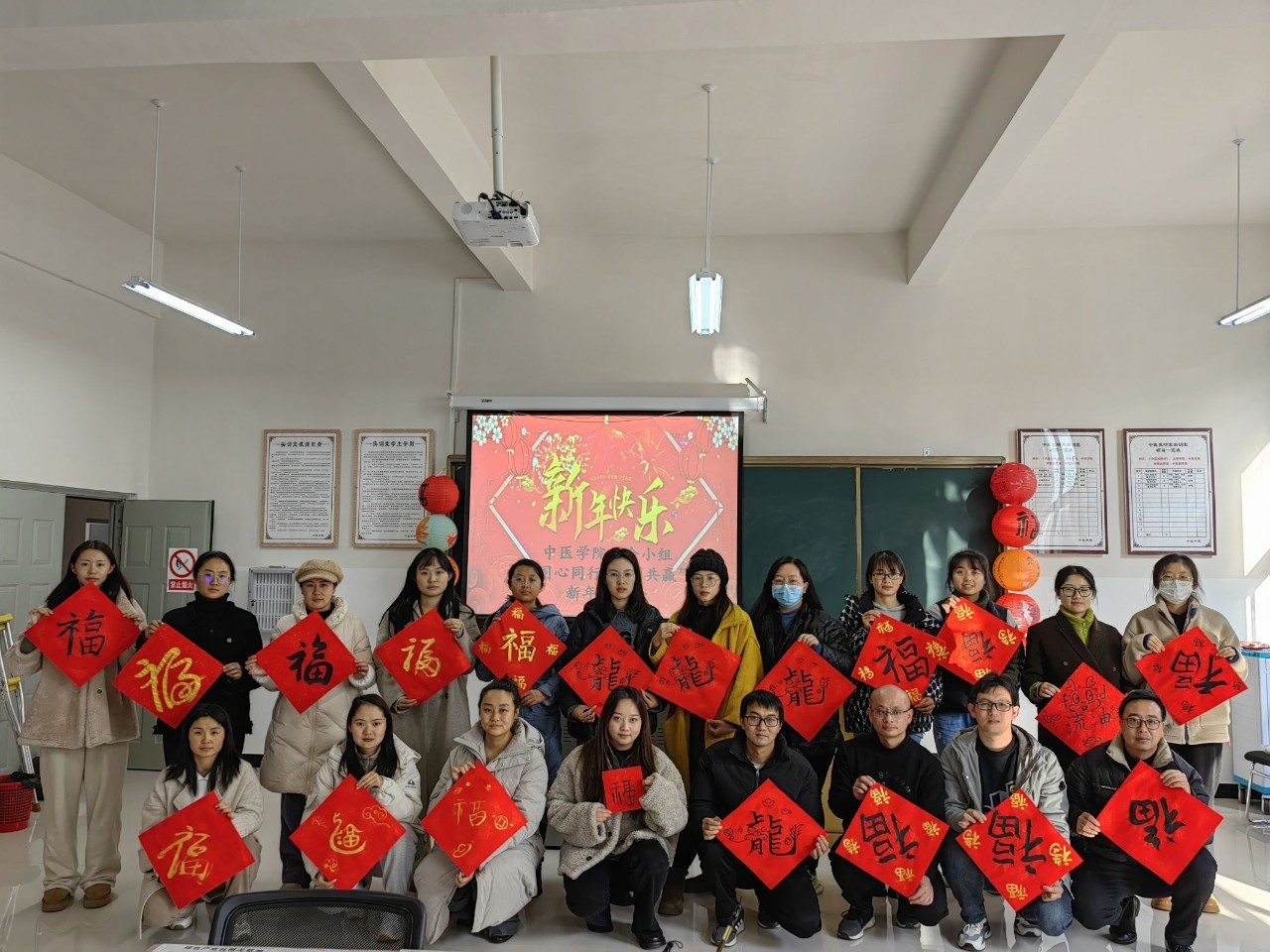 “福”字是我国最古老的文字之一,历经千年演变,形态变化万千,其不断丰富的内涵和历史意义,逐渐演变成人们心中最重要、最喜爱的文字之一。活动现场准备了红色福字纸、毛笔和墨水,通过教职工们发挥创意,在纸上挽袖提笔挥毫泼墨,写下迎接新年的第一个“福”字。一个个“福”字跃然纸上,有的苍劲有力,有的可爱俏皮,有的潇洒自如。活动最后,中医学院工会小组为工会会员们送上写满了祝福语的新年礼物,并为非工会会员送上新年福袋。