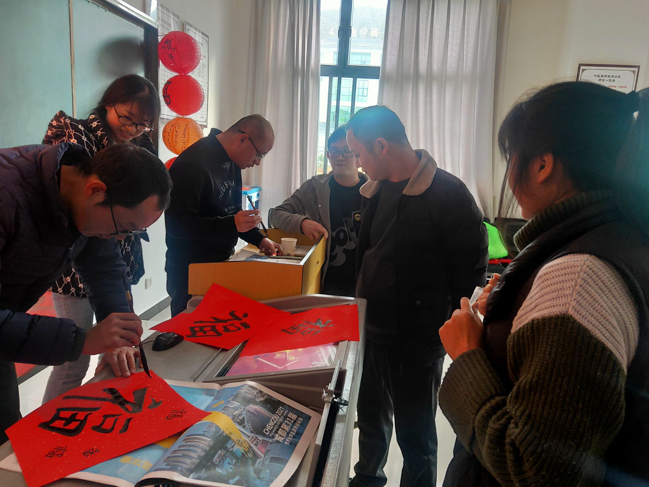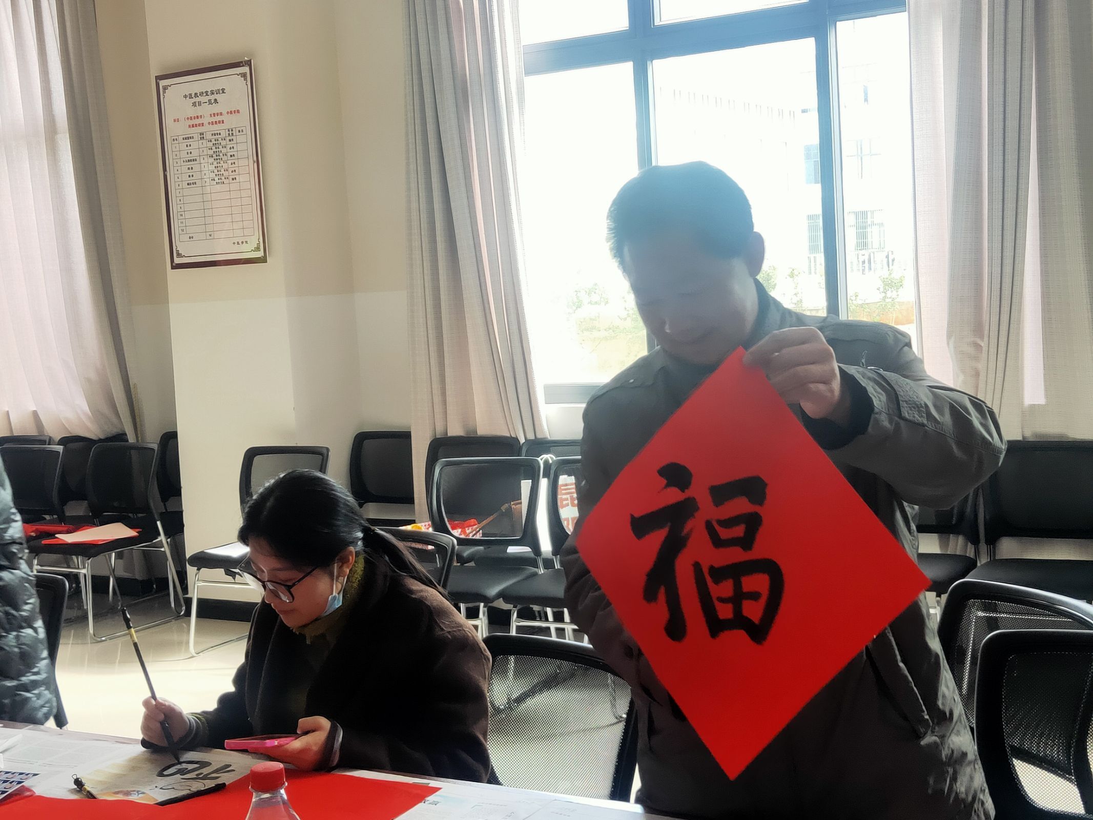 中医学院直属党支部书记易斯坐同志总结到本次活动取得圆满的成功,现场氛围热烈、欢快。通过写福送福的形式,弘扬了中华传统文化,将美好的祝福传递给了更多的人,让他们感受到了工会的关怀与温暖,同时增强了工会成员之间的凝聚力。