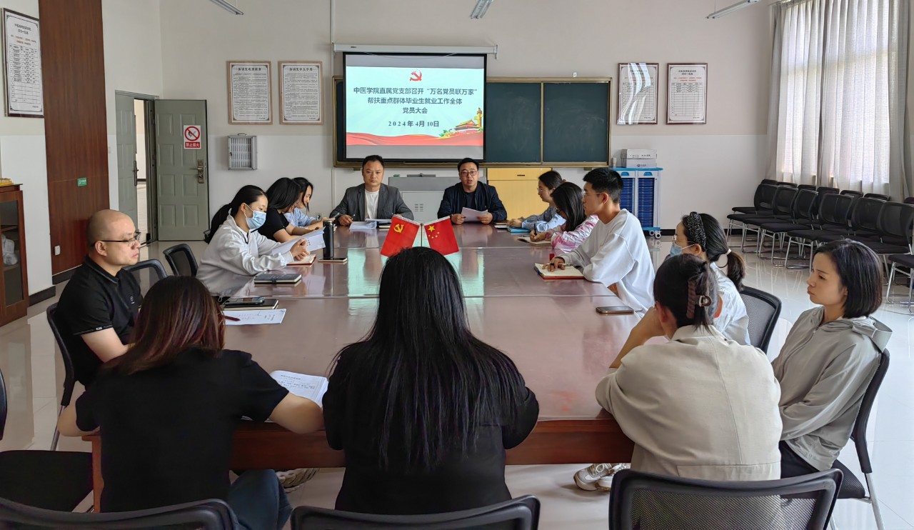 为进一步加强党组织与群众的联系,推动党建工作与业务工作的深度融合,真正发挥党员的先锋模范作用。根据《中共beat365平台官方网站委员会关于印发建立健全党员帮扶重点群体毕业生工作机制实施方案的通知》昆卫党发〔2024〕8号文件精神,中医学院直属党支部于2024年4月10日开展“万名党员联万家”挂包帮扶2024届重点群体毕业生就业工作全体党员大会,中医学院全体党员参加会议。