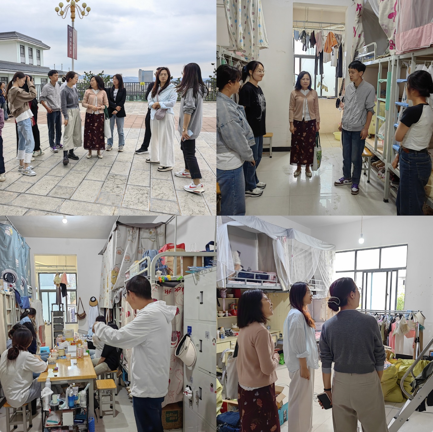 走访结束,院长亲切地叮嘱同学们要注意身体,鼓励同学们要继续坚定理想信念,要以更加饱满的心态去面对新的学习和生活,拥抱变化,学会积极调节自我情绪。此次宿舍走访为入住新宿舍、开展新生活的同学们带来了极大的鼓励,也让同学们的心灵获得了满满的暖意。