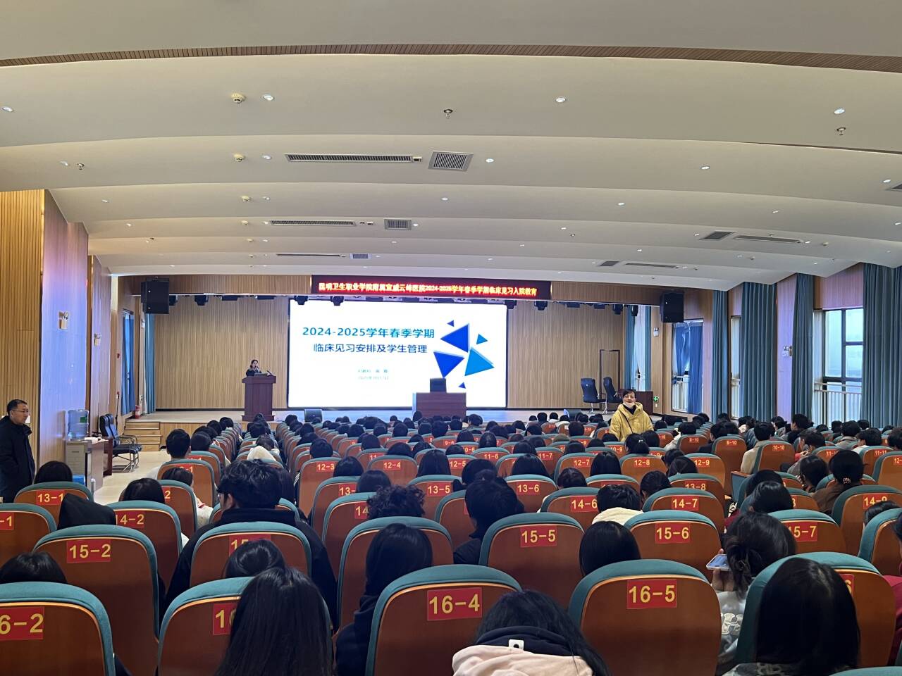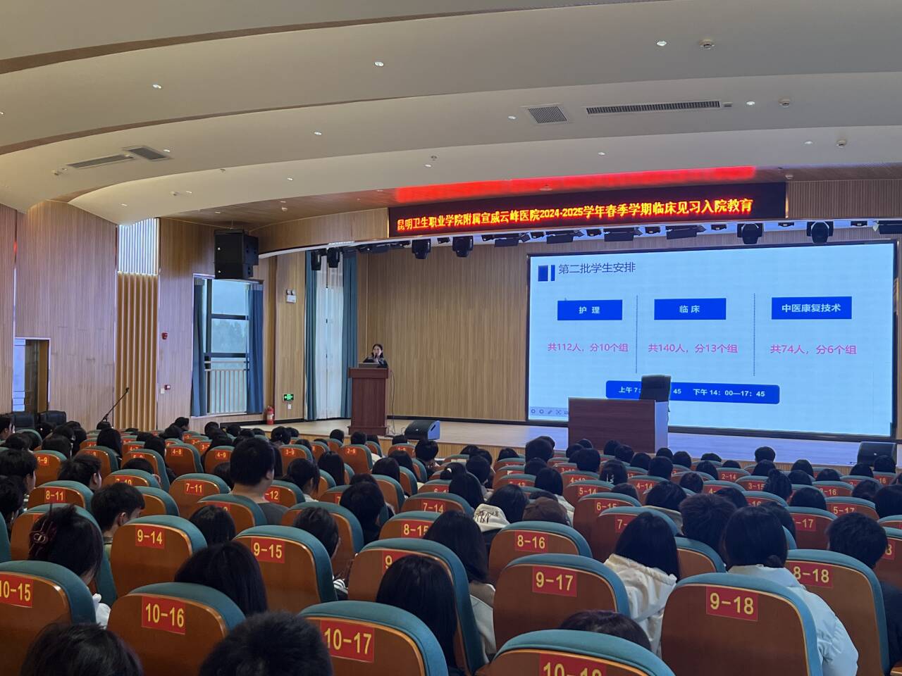 开班仪式结束后,云峰医院科教科高老师为学生讲解了《宣威云峰医院概况及发展规划》,进一步帮助学生了解医院的基本情况。随后,医院还安排了《医德医风》《院感及职业安全防范教育》等课程,为学生见习做好充分准备。