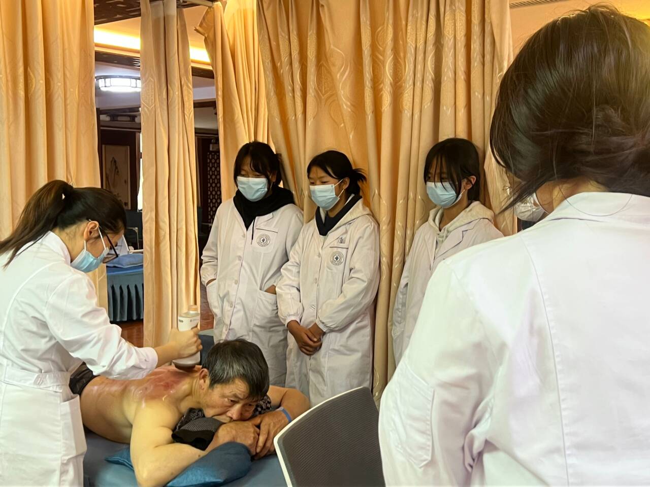 见习期间,学生分组跟随带教老师深入中医康复科等科室,观摩康复治疗过程,学习中医康复技术在临床中的应用。带教老师结合实际病例,讲解康复治疗方案及操作要点,指导学生与患者沟通,提升实践能力。