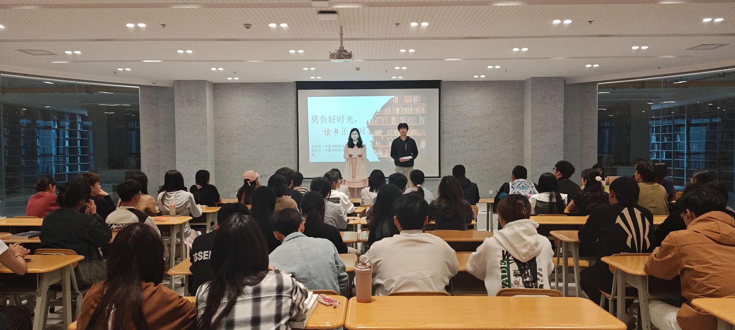 为营造浓厚的读书氛围,激发师生的阅读热情,培养良好的阅读习惯,中医学院党群团联合于4月17日在图书馆二楼多功能活动厅成功举办了“莫负好春光 读书正当时”系列读书活动。中医学院直属党支部书记易斯坐、党政办主任李晓颖、学管办主任兼团总支书书记张祥、党政办老师张颖丽、学管办老师林奕漫及辅导员老师梁琪出席活动,本次系列活动通过经典诵读、演讲、好书分享、图书漂流及阅读马拉松比赛等多种形式,引导师生感受阅读的力量,提升文化素养。