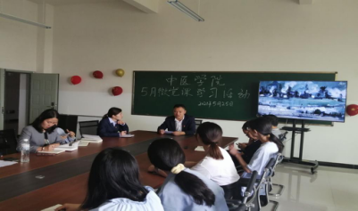为深入学习贯彻习近平总书记在全国党史学习教育动员大会上的重要讲话精神,把党史学习教育与学习贯彻新时代中国特色社会主义思想结合起来。2021年5月25日上午,中医学院书记张艳同志的组织下,中医学院党支部全体党员、预备党员、入党积极分子、发展对象等18人参加中医学院党支部2021年度第二次“党员讲微党课”读书学习活动。