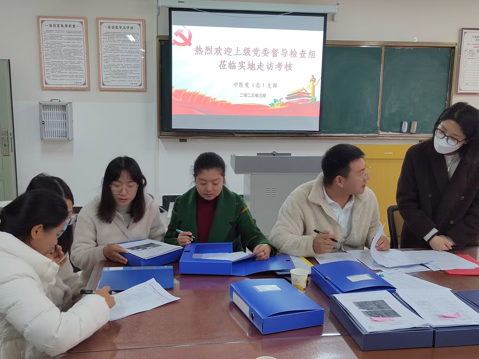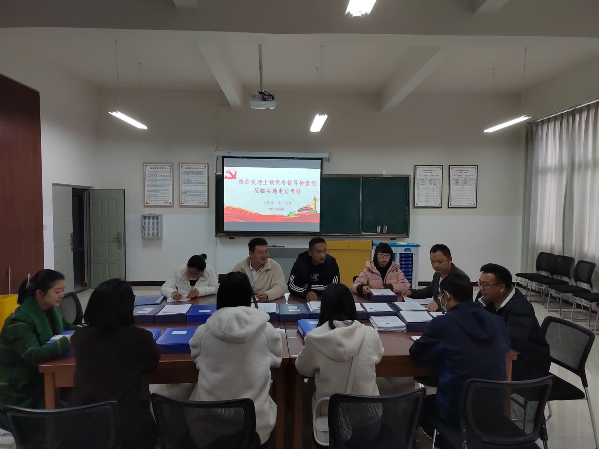 为进一步加强和改进beat365基层党建工作,强化各级党组织狠抓党建工作的自觉性和责任感,2023年3月2日上午,上级党委督导考核组来到中医党总支部,对中医党总支部及下设两个支部的党建工作进行考核。