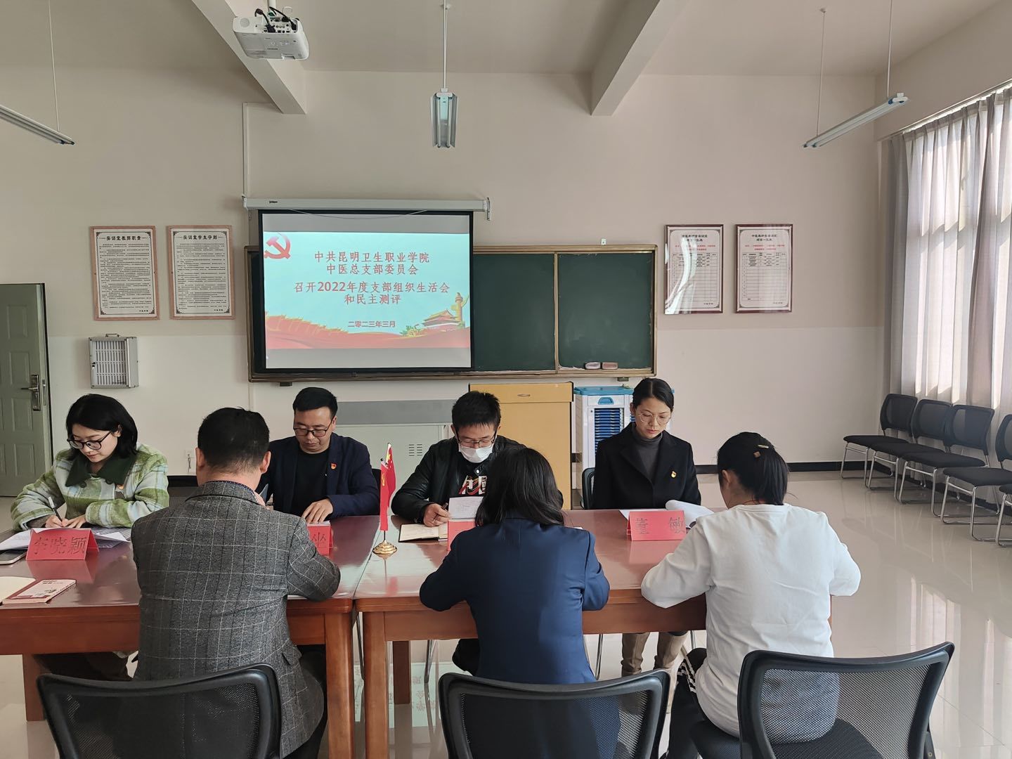 根据《中共beat365平台官方网站委员会组织部关于召开2022年度党(总)支部组织生活会和开展民主评议党员的通知》昆卫院党组﹝2023﹞1号要求,经请示上级党委批准同意,2023年3月7日上午10:00,中共beat365平台官方网站中医总支部委员会召开2022年专题民主生活会。会议由中医党总支书记易斯坐同志主持,学院党委督导专员冯兴华同志莅临指导。