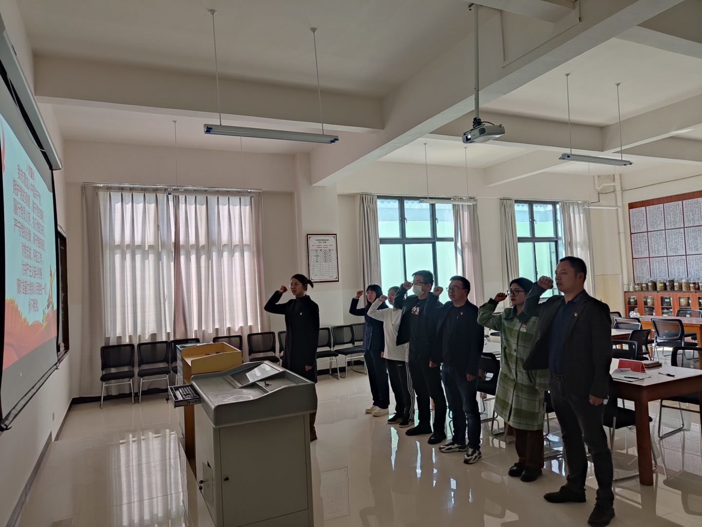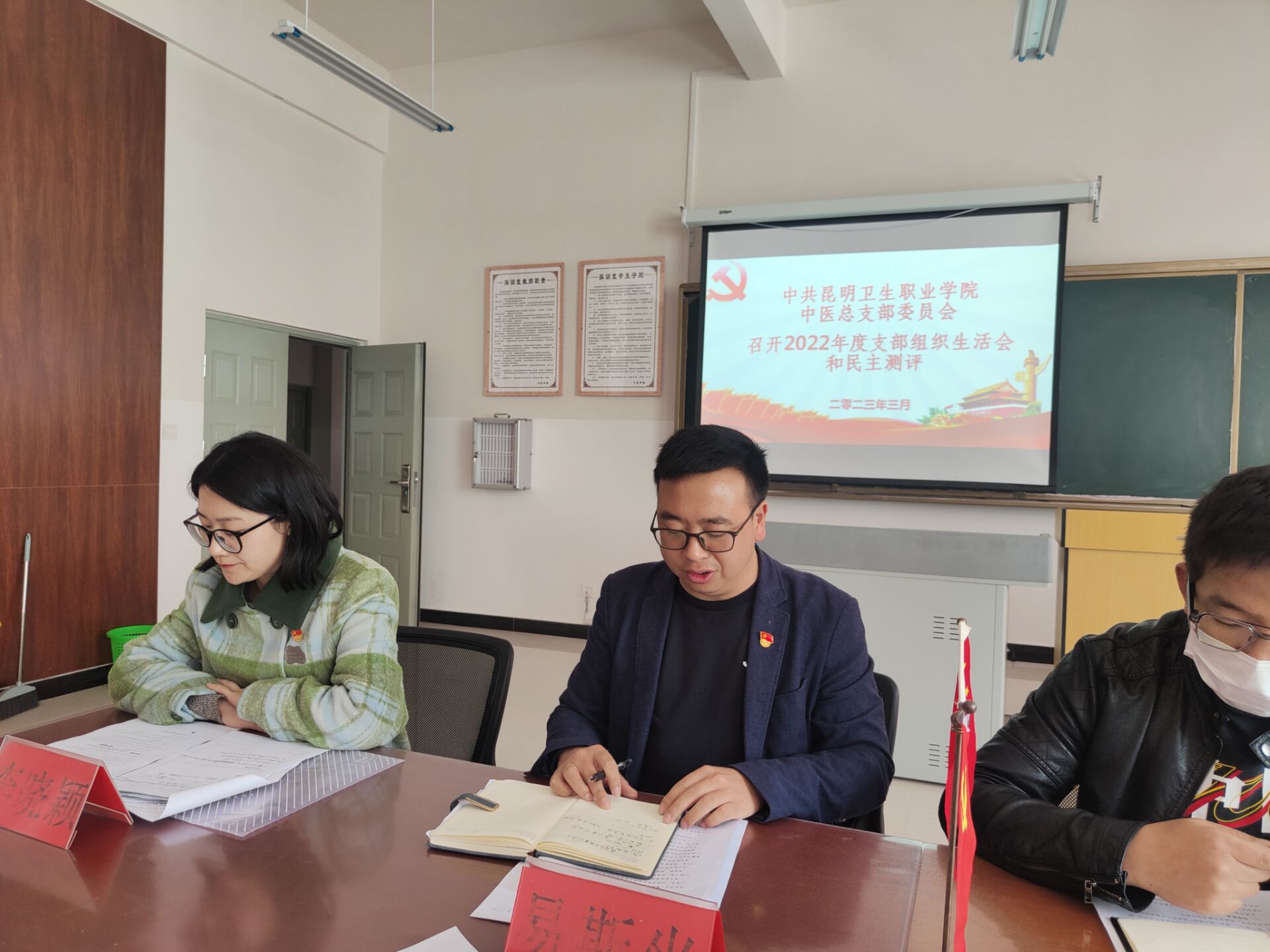 会议在庄严的国歌中开始,中医总支部委员会书记易斯坐同志代表支部领导班子做对照检查,对2022年度支部的工作情况进行报告,对领导班子作风、支部建设存在的问题进行了总结,对班子关系到群众切身利益的问题和联系服务群众工作、对群众所提意见、上级党组织和督导组点名问题进行了检查说明,并提出整改思路及措施。