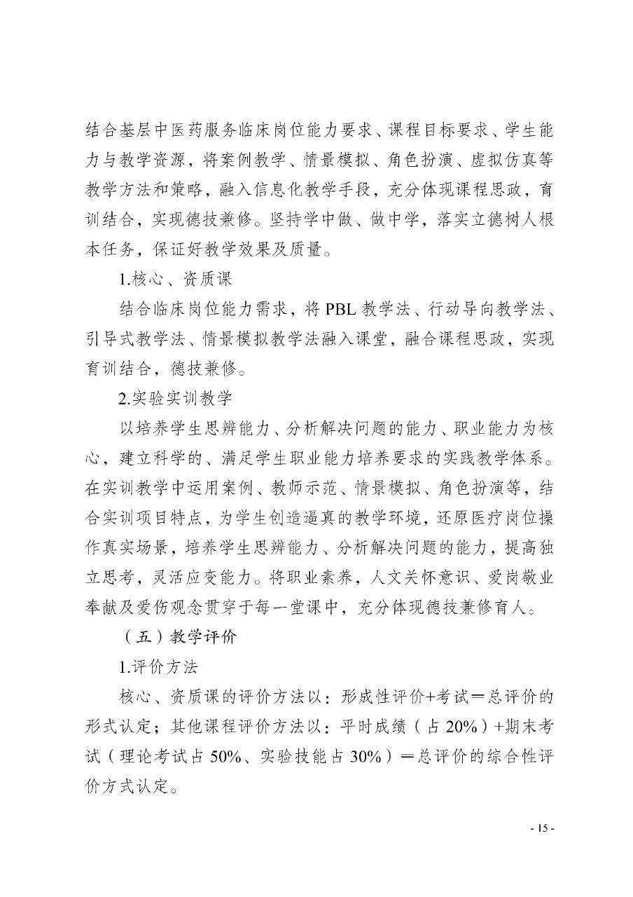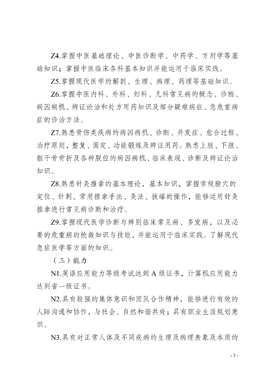 中医学专业人才培养方案