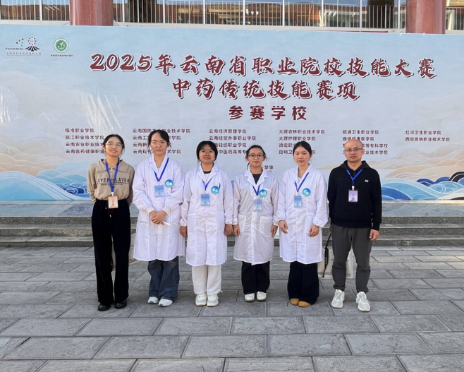 本月,中药教研室组织学生参加了2025年云南省中药传统技能大赛,在全省42支参赛队伍中脱颖而出,荣获大赛二等奖(总排名第六)和三等奖的优异成绩。通过选拔和培训,中药教研室选派8名同学组成两支代表队参赛。在为期两天的赛程中,同学们在审方、中药性状鉴别、中药显微鉴别、中药调剂、中药药剂等技能测试及综合展示环节中表...