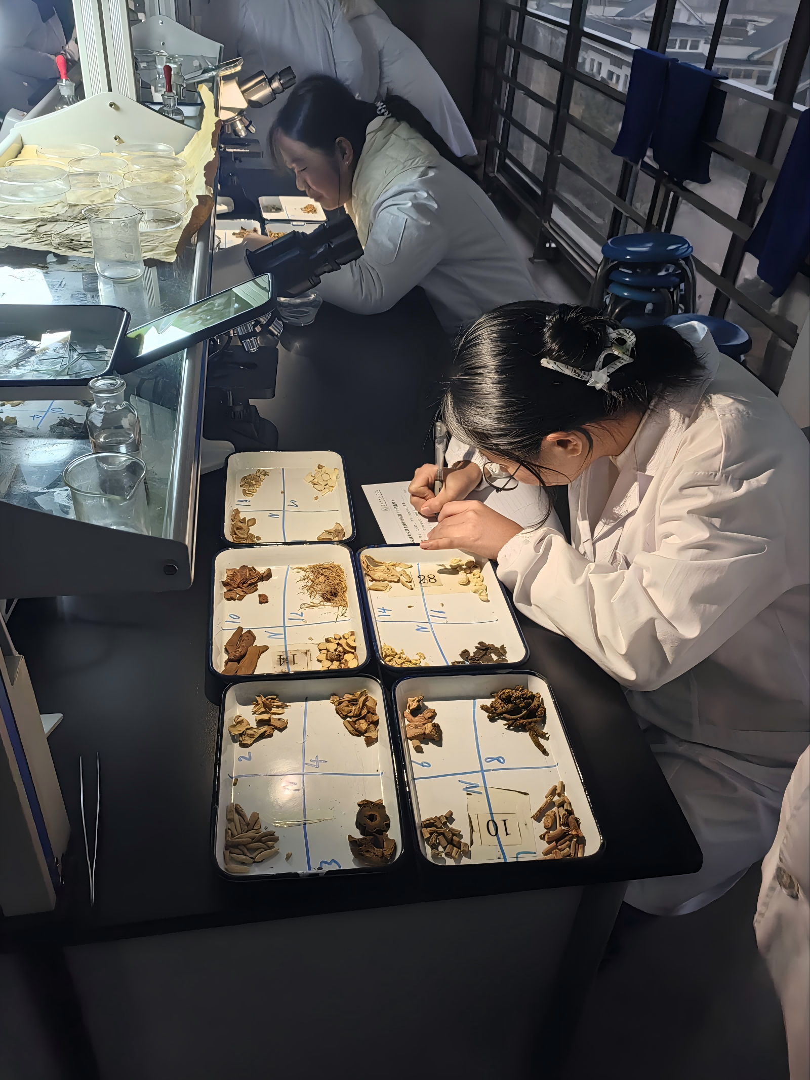 随着12月实训课结课月的到来,中药教研室成功组织开展了一系列中药鉴定实验技能考试。本次考试旨在全面检验学生对中药材鉴定知识的掌握程度及实际操作能力,既是对学生学期学习成果的系统评估,也是强化其实践技能、培育科学素养的关键环节。考试聚焦中药材分类、鉴定及记录等核心技能,采用实操考核形式,要求学生在实验室环境中完...